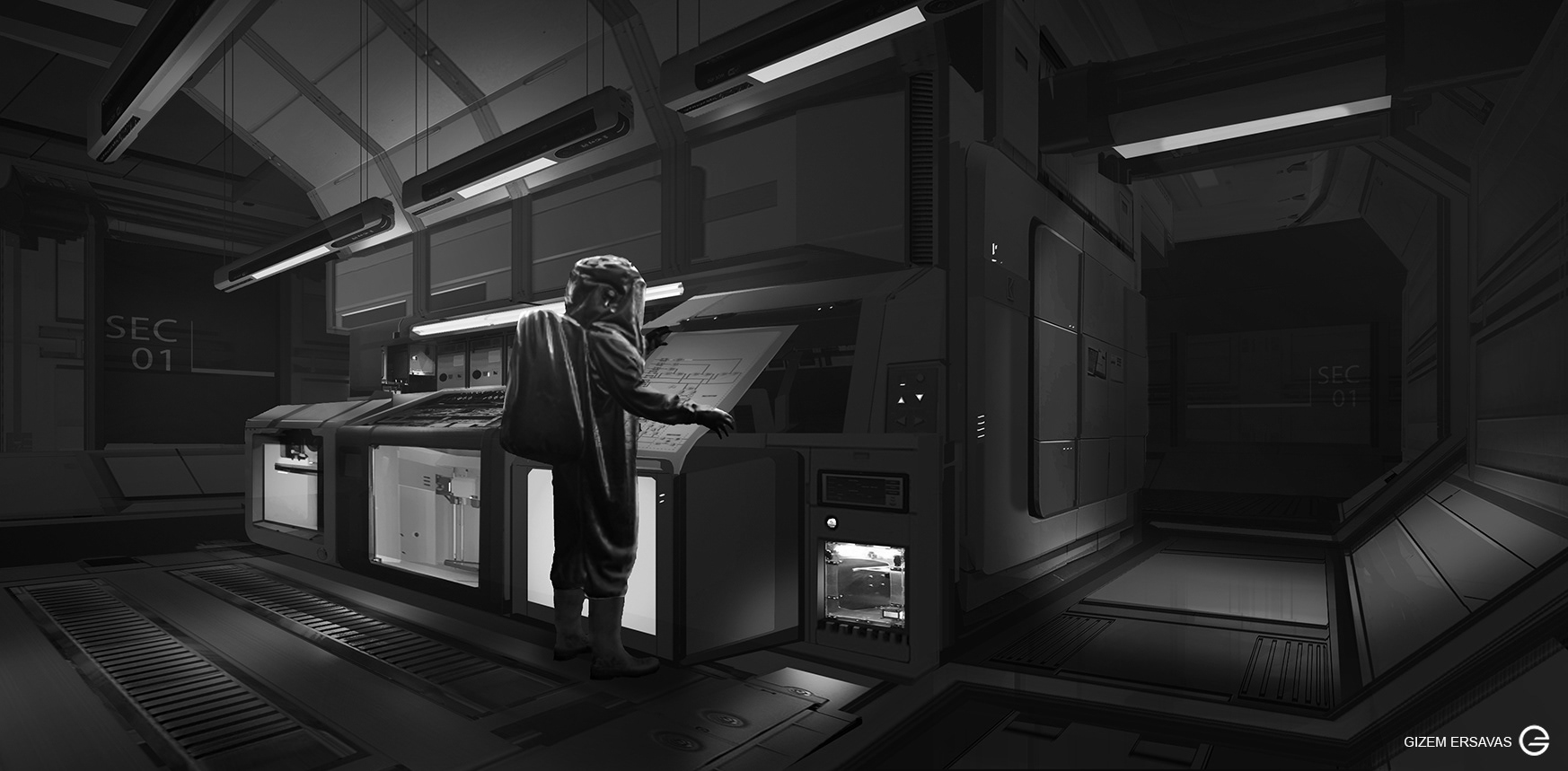 SCI FI - B/W INTERIOR CONCEPT Design Explorations